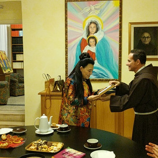 Domenica 25 novembre 2018 la "ambasciatrice di carità" della Cina, signora Zhang Xianglan, ha visitato la nostra accademia. A lei è stata donata una Vergine con il Bambino segno di pace e amore. Essendo una cantante e compositrice si è visto insieme la possibilità di poter musicare e cantare le note che sono state scoperte nella Tilma di Guadalupe.